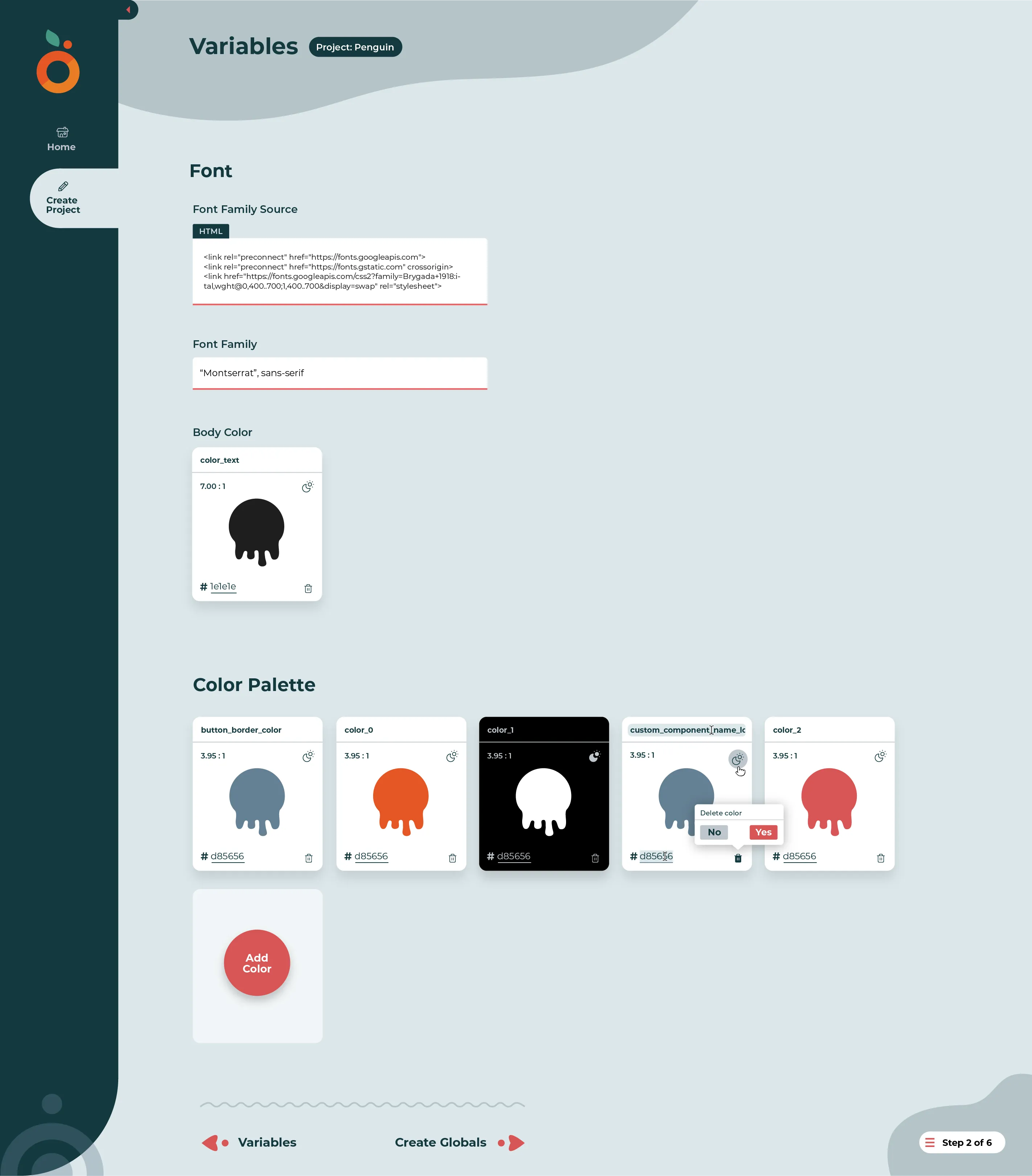 Guided Configuration UI: A step-by-step wizard that handles project metadata, typography, and color palette definition.